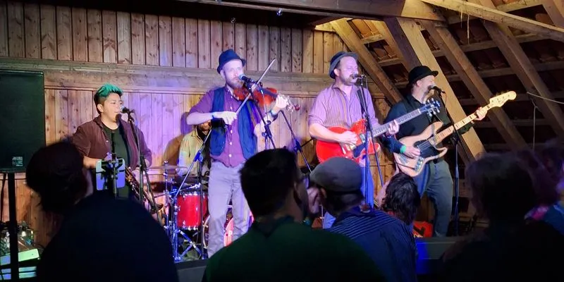 Die Workshops waren bunt und vielseitig: Kontrabass spielen lernen, leckere Gerichte im Dutch Oven zaubern oder beim Klettern neue Herausforderungen meistern, um nur einige zu nennen! Höhepunkt war der mitreißende Auftritt der Band Polkageist, die mit ihrem Sound für lebhafte Stimmung sorgte. Auch die ausgelassenen Singerunden mit Open Stage bis tief in die Nacht machten das Wochenende zu etwas ganz Besonderem.